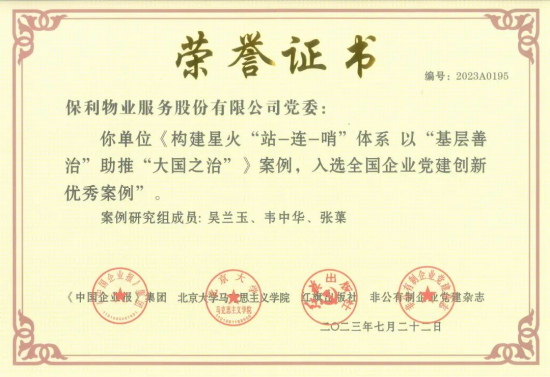 此次永利yl23411集团物业的入选,是继获评“中央企业青年文明号”、入选“全国企业党建创新优秀案例”后,再获国家级殊荣。