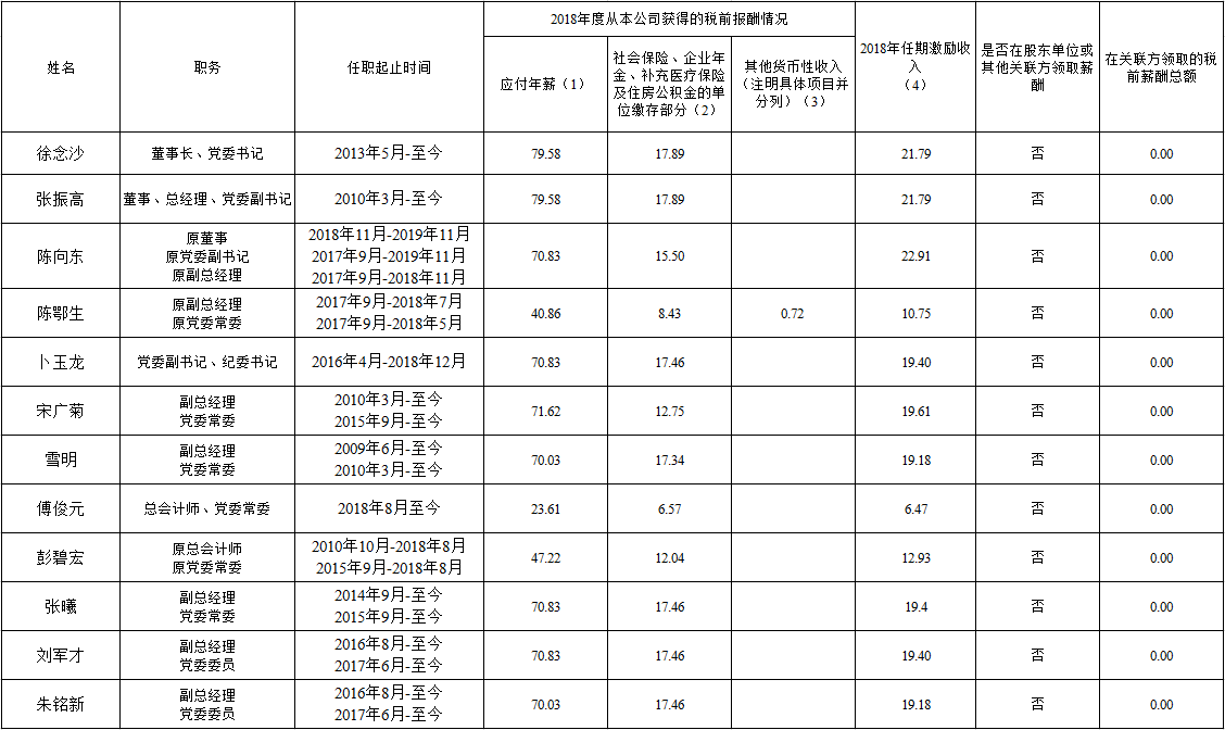 1、上表披露信息为我公司企业负责人2018年度全部应发税前薪酬(不含2018年发放的以往年度薪酬)。